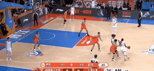 CBA常规赛:福建男篮对阵上海男篮的比赛正在进行中。